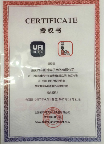 发证机构: 环球滤清器HK品牌(乘用车产品)特约经销商